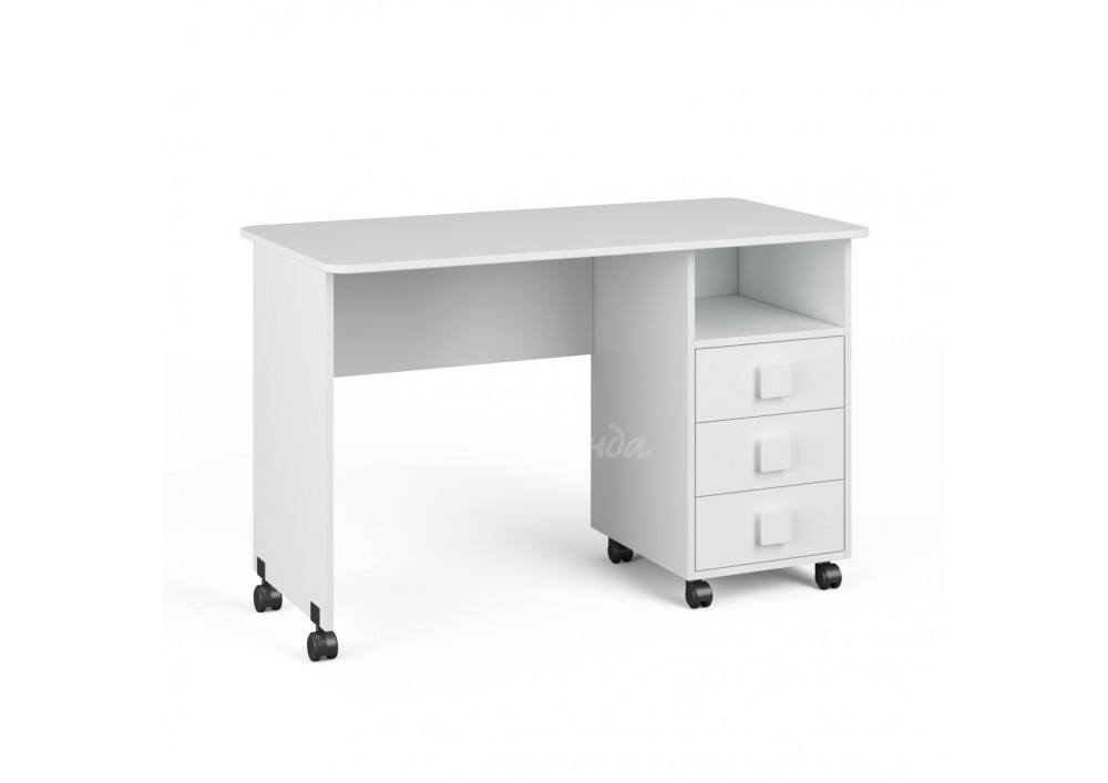 Три выкатных ящика стола обеспечат удобное хранение канцелярии,письменных,учебных и прочих принадлежностей.Над ящиками открытая полка для мелочей,которые будут всегда под рукой.
